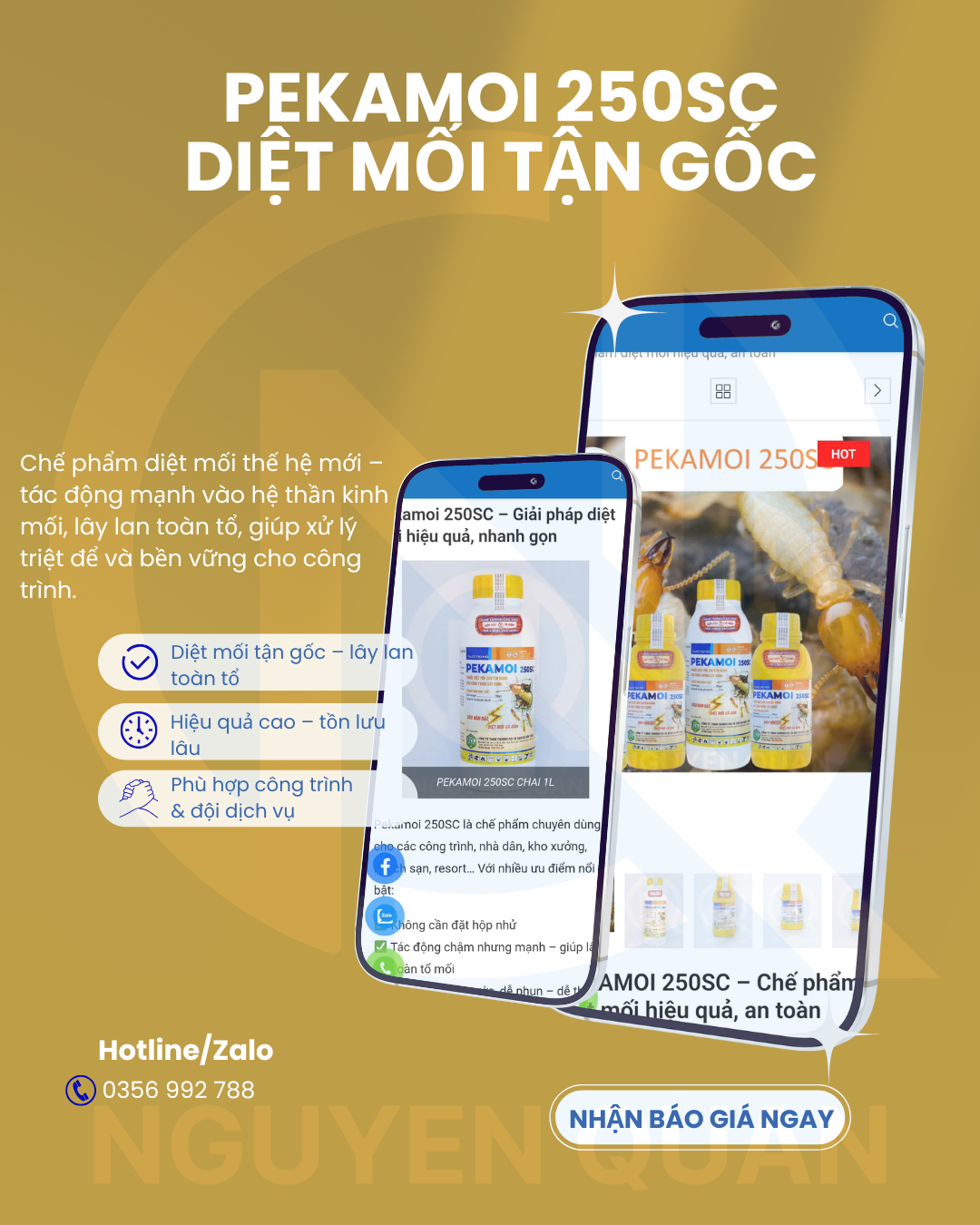 PEKAMOI 250SC là chế phẩm diệt mối chuyên nghiệp, được thiết kế để xử lý tận gốc hệ mối, không chỉ những con bạn nhìn thấy.